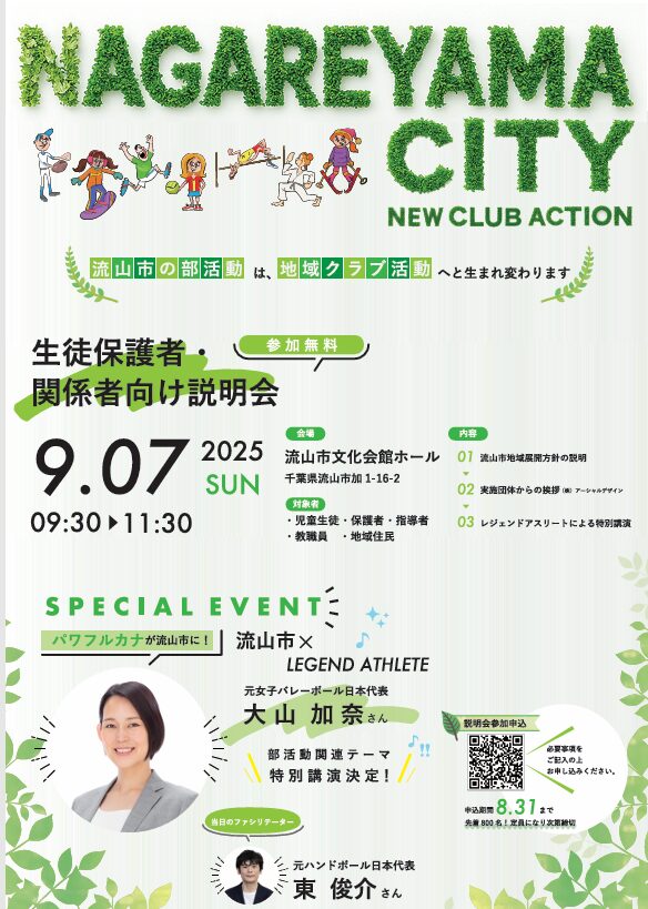 2025.10.8 更新流山市教育委員会、9月7日(日)に元女子バレーボール日本代表 大山 加奈氏を特別ゲストに迎え、部活動地域展開における市内説明会を開催!