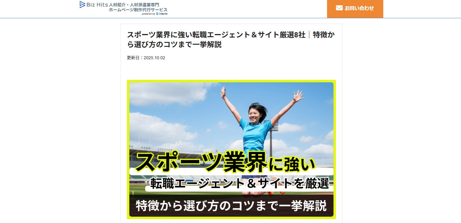 「スポーツ業界に強い転職エージェント&サイト厳選8社|特徴から選び方のコツまで一挙解説」の記事におすすめ就活エージェントとして弊社が掲載されました。
